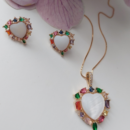 • Conjunto Gota Cravejada c/Pedra Colorida