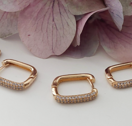 • Trio Argola Retangular Cravejada