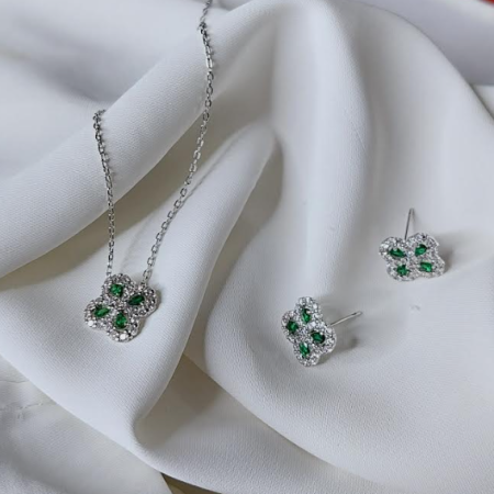 • Conjunto Trevo cravejado verde